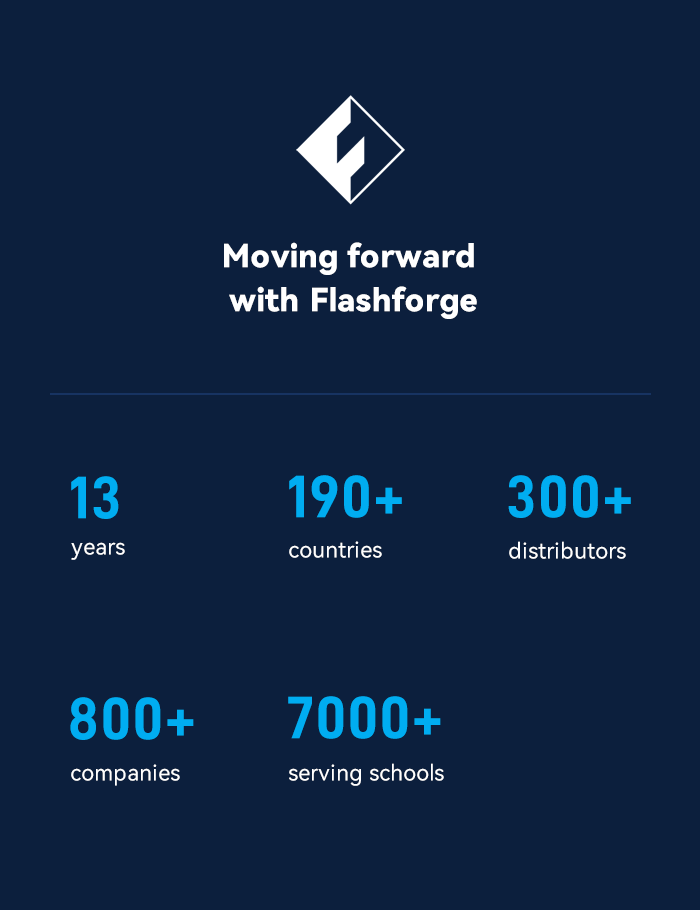 Founded in 2011, Zhejiang Flashforge 3D Technology Co., Ltd. is a world-renowned supplier of 3D printing solutions. By integrating cutting-edge technology with outstanding craftsmanship, we are dedicated to producing cost-effective, reliable, and user-friendly 3D printers.